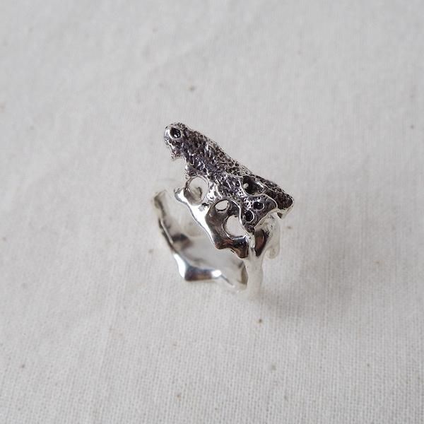 黒燻し:燻し加工で全体が黒くなっています。出ている部分はだんだんシルバーの光沢が出てきます。