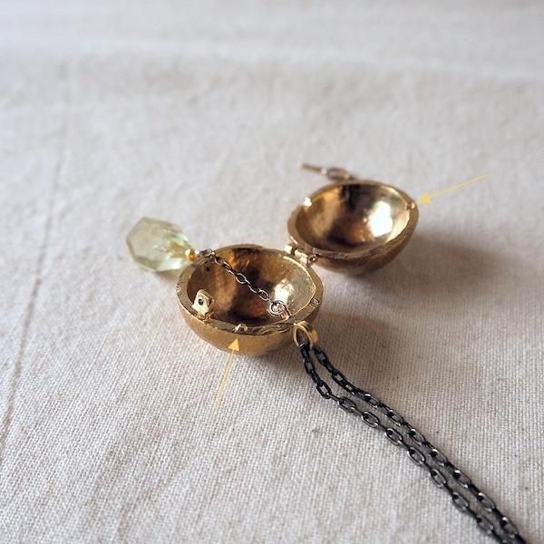 ネックレス用のチェーンはレモンがついた一番端と、そこから5cm,10cmの三つの○パーツで長さの調節ができるようになっています。