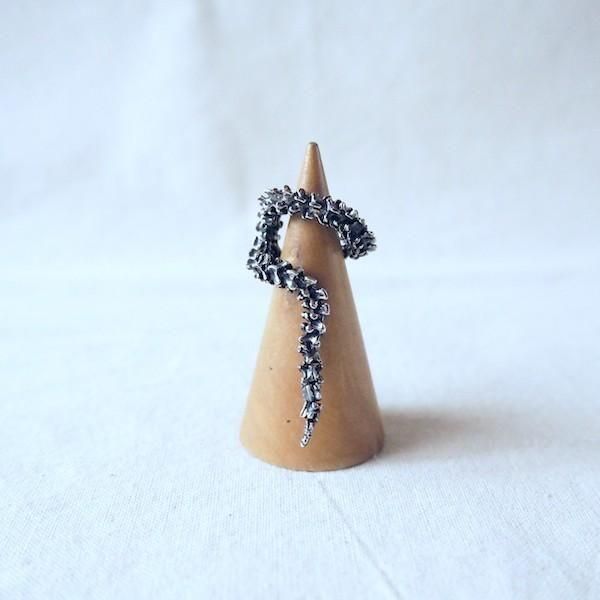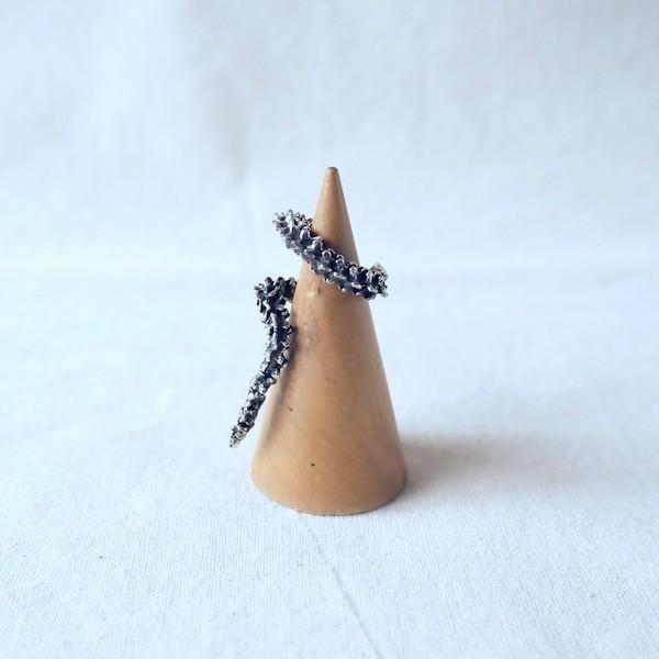 黒燻し:燻し加工で全体が黒くなっています。出ている部分はだんだんシルバーの光沢が出てきます。