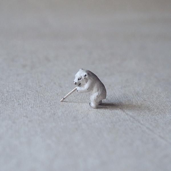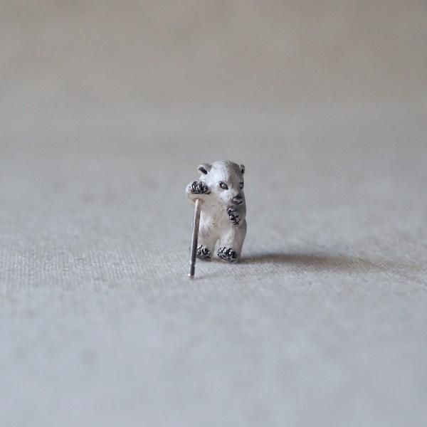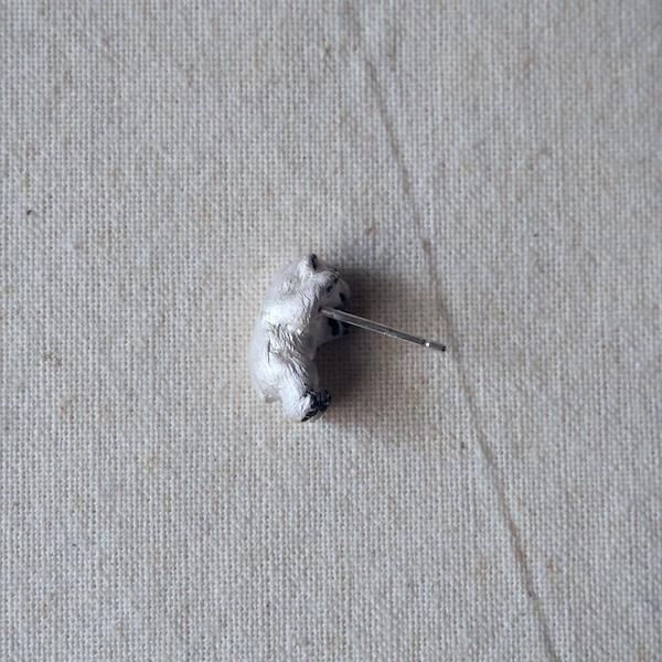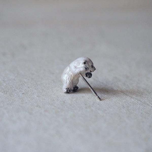 【 その他 】あどけない顔つきの小さなシロクマの子供です。四肢には小さな肉球がついています。耳たぶにじゃれつくような雰囲気。